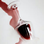 Zwei Personen stoßen mit Weißweingläsern an, der Wein schimmert goldgelb im Licht.
